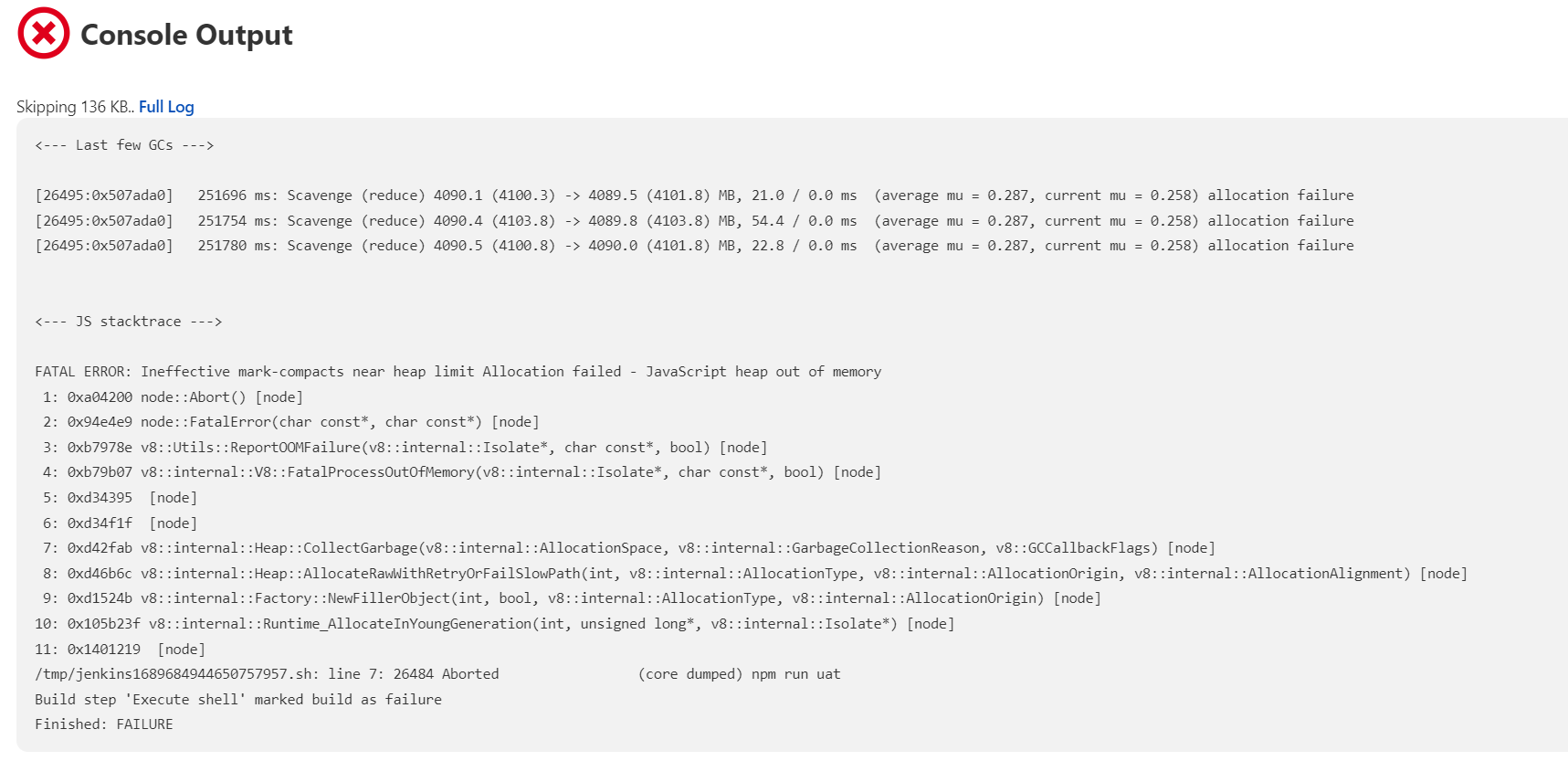 描述: 无效的标记压缩接近堆限制分配失败-JavaScript堆内存溢出!