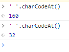 键盘输入的空格的ASCII值是32而不间断空格(non-breaking space)是ASCII值为160的空格,就是页面上的 所产生的空格.个间断空格的UnicodeQ 编码为Wu00A0.