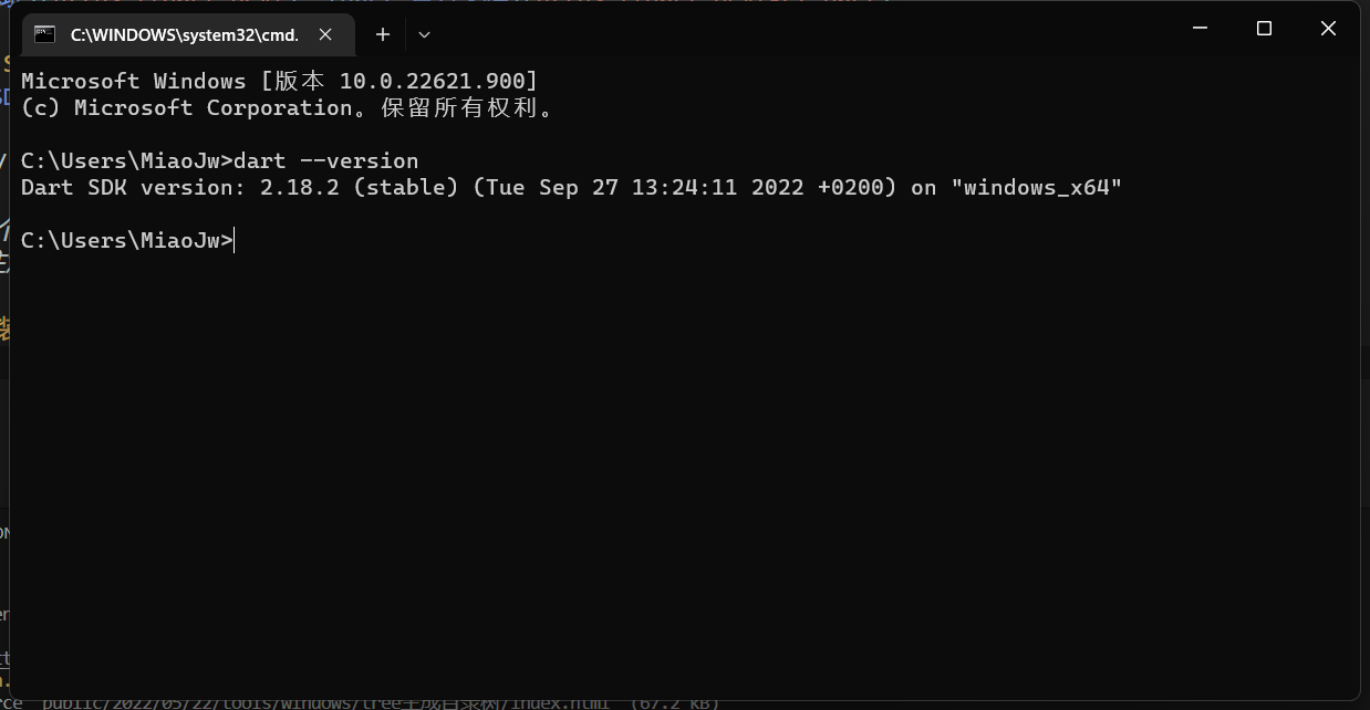 win+r呼叫cmd窗口, 输入dark --version回车即可!