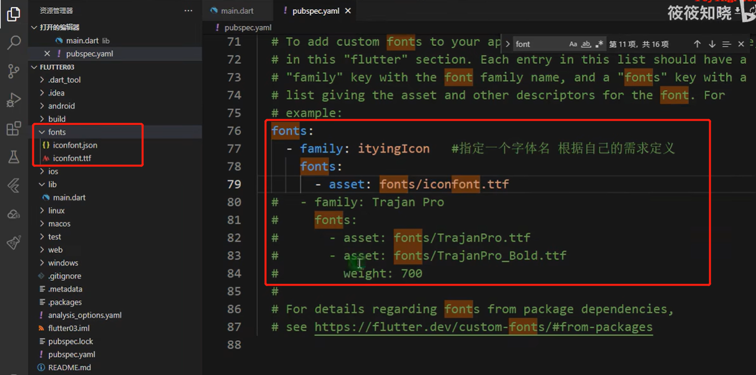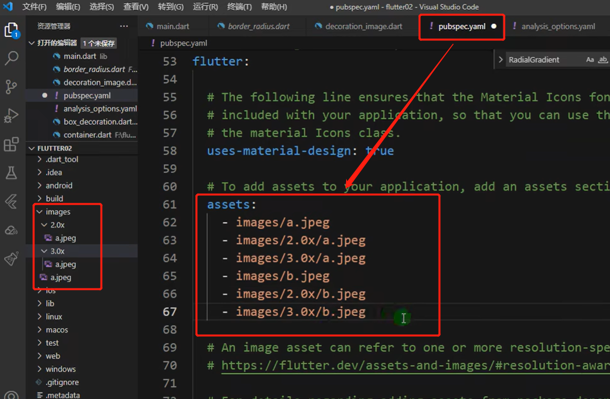 2、然后在这个文件里pubspec.yaml配置下assets路径